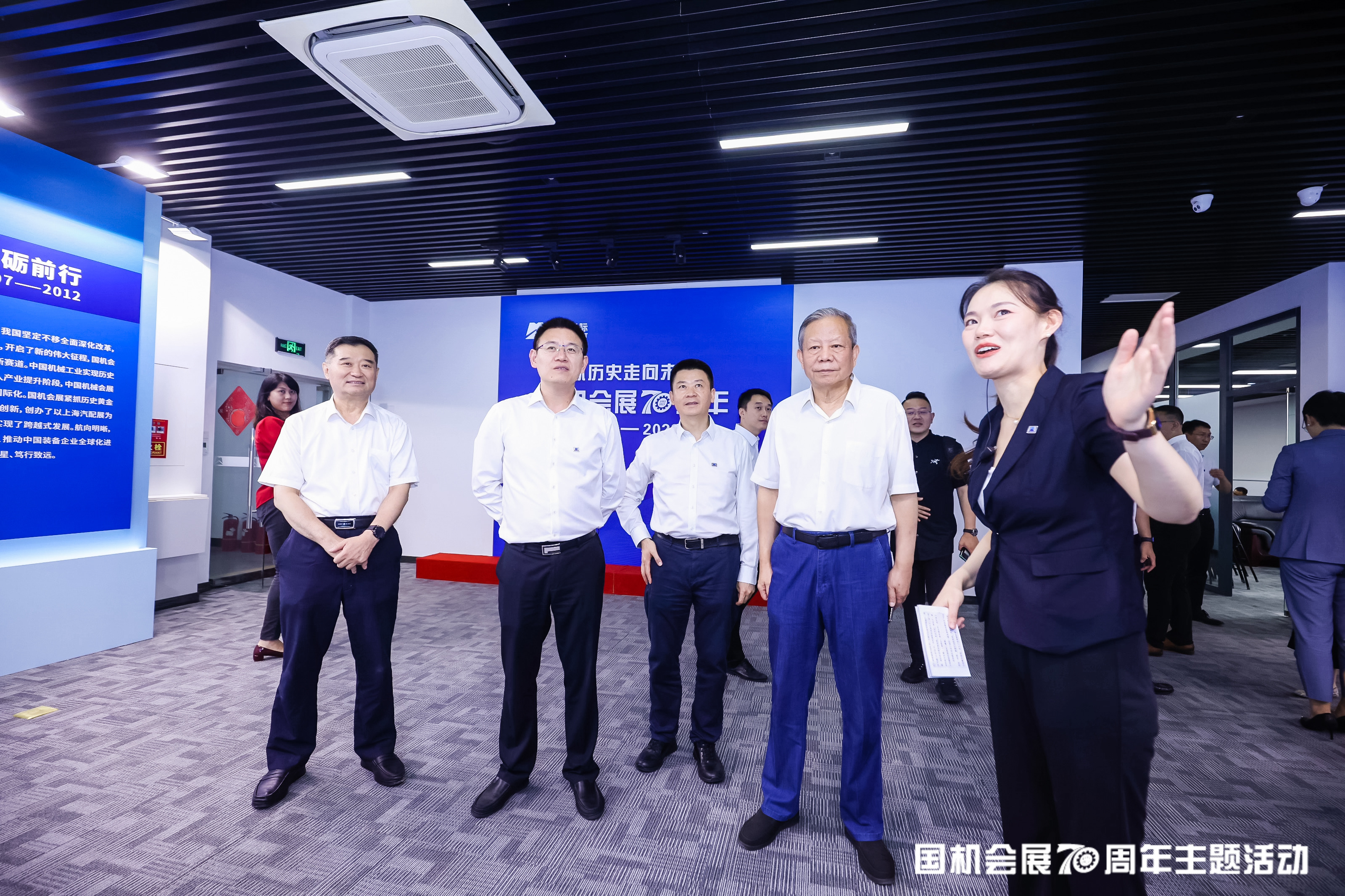 與會嘉賓觀看了“從歷史走向未來,國機會展70周年”主題展覽。展覽以歷史為主線,系統回顧了國機會展源起于1953年第一機械工業部產品展覽處,歷經改革開放、企業重組,從無到有、從小到大,一路乘風破浪,刷新了多個行業紀錄,到如今發展為國內會展界頭部企業的輝煌歷史。